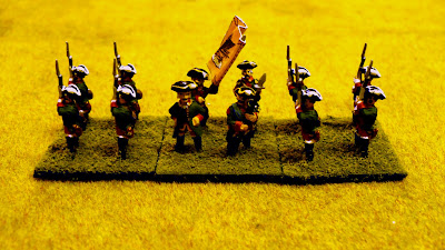 My cavalry sweep started well with divisional moves allowing my four horse units to advance quickly but a narrow area to deploy into saw them faced adeptly by Swedish Dragoons, Commanded shot (who had advantage of rough terrain) and some allied foot. My Tercios advanced slowly in centre one soon becoming target of massed Swedish artillery. My first charge with Currassiers into a unit of allied foot (average late Pike & Shot unit) was thrown back with losses but I then charged them back again along with second Currassier unit and two (!!!) generals, some 200+ pts versus a mere 40ish. General Horn joined the allied foot. Great impact and melee rolls saw enemy foot disordered and Horn killed and their eventual rout. Some skirmishing type activity on left and lots of shooting in centre, wherein Tercios suffered continuously from enemy artillery.