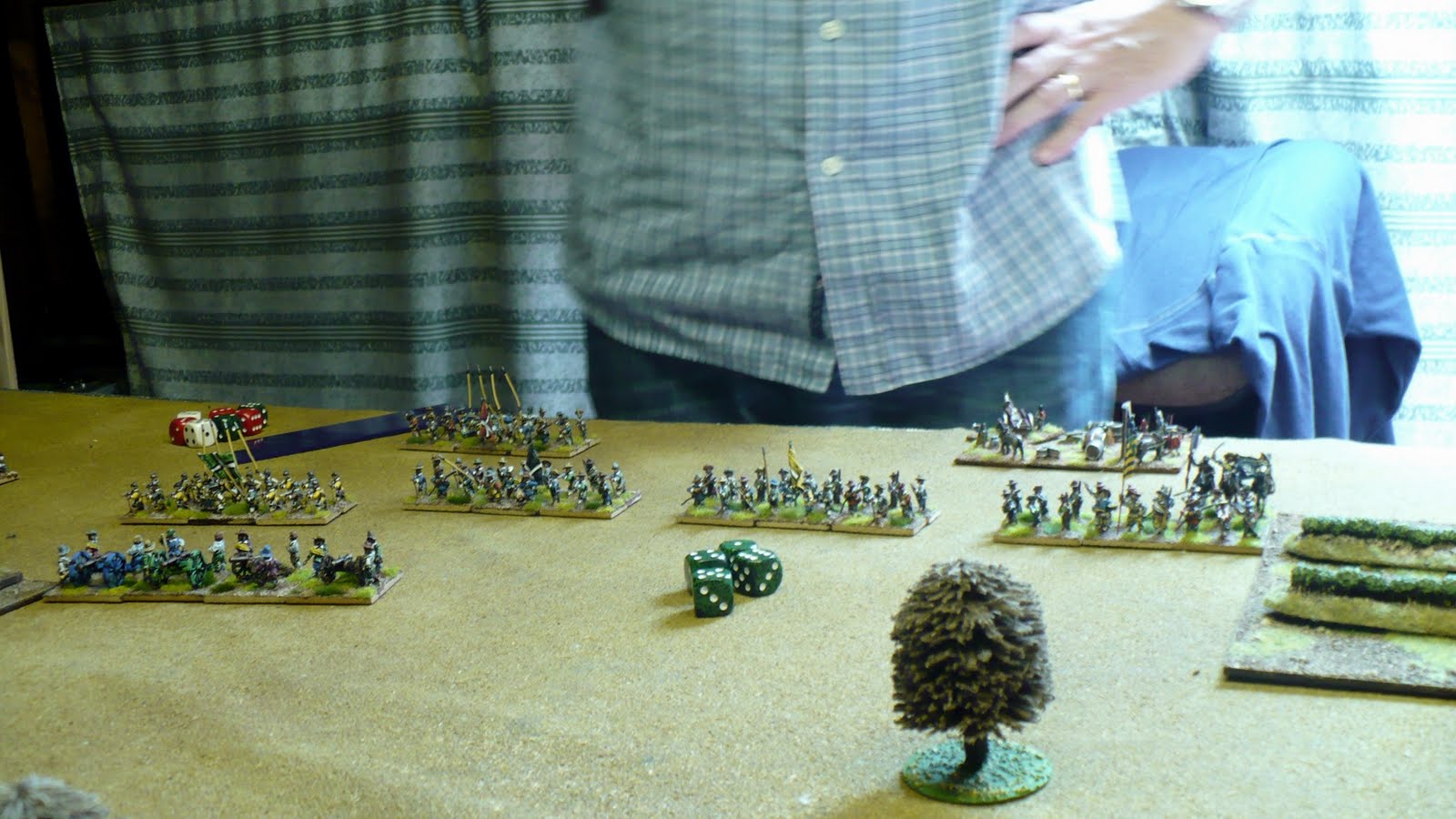 Not much occurred elsewhere as Artillery ineffectual for both sides and Prussians (we gave foot Superbly Drilled, Steady and Platoon Fire) retired after initial advance as they felt unable to deal with solid Russian Infantry (they had Steady and Valiant). Supported units in BP are tough to beat frontally if steady which seems fine. Armies quite evenly matched compared to other sets we have used although Freddie does get a nice command bonus (essentially some extra order roll attempts).