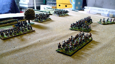 Back to fray after busy few weeks away and working with a FOG R game using a Later Catholic army against Stephen's French (he had painted up a few new command figures and wanted to give them an outing so he choose game). Another very enjoyable encounter.