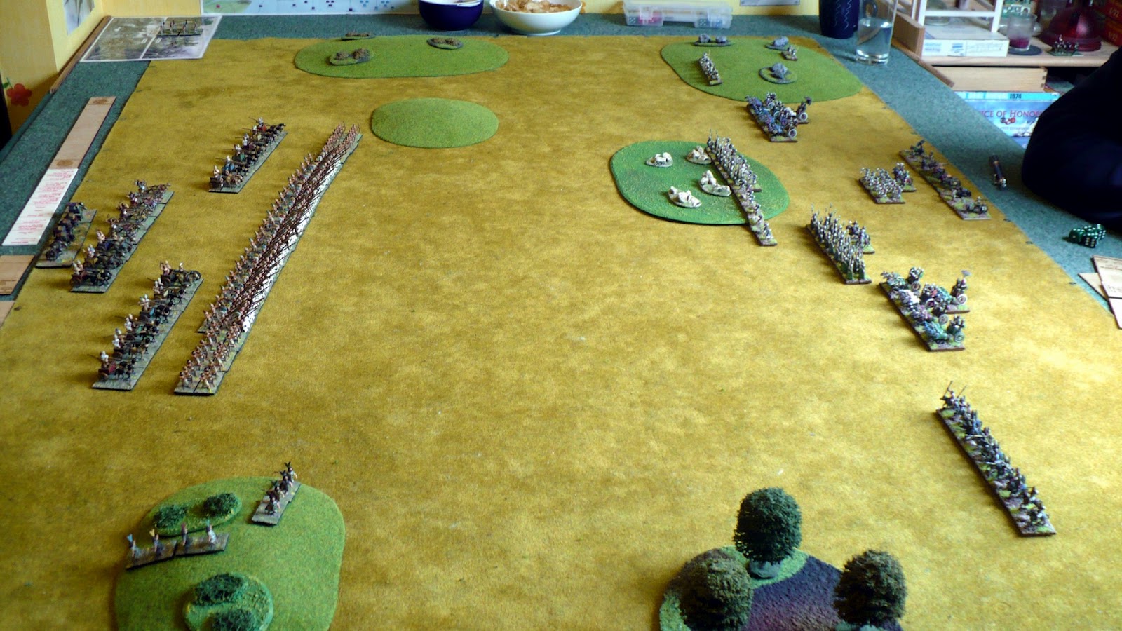 Have to clear game off table to make way for another Dbmm game tomorrow so unlikely to finish but I must say I am really enjoying this even playing it solo as it has great flavour and a very playable system. Might be game to make me dip toes into Vassal play.