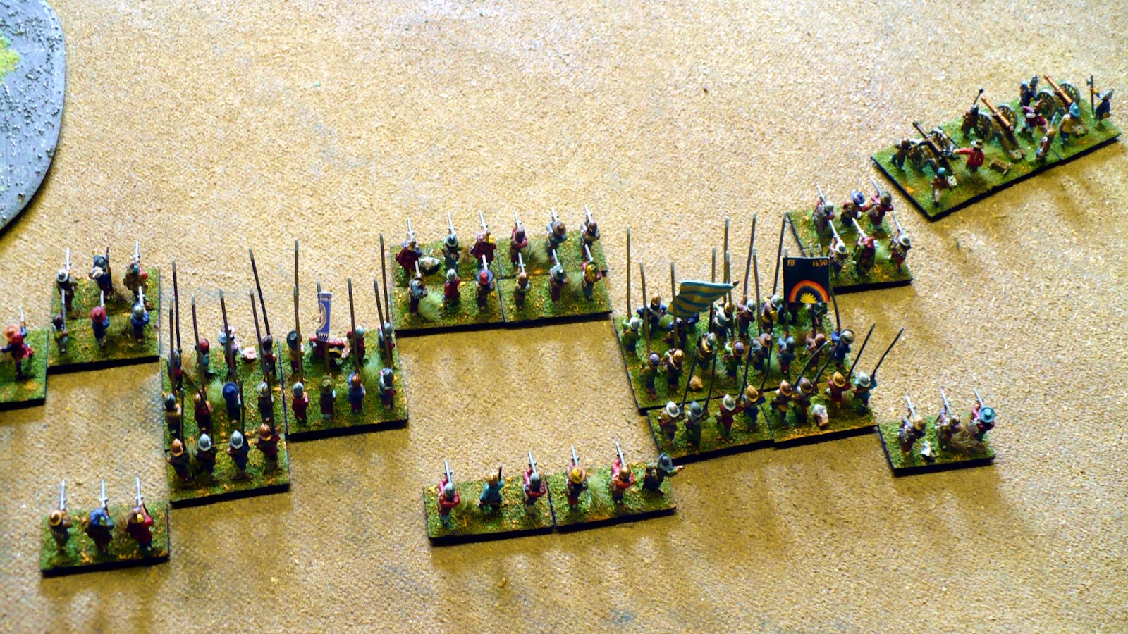 In Austrian theatre French moved on Salzburg and a close battle was fought (7 vs 7 dice) when Eugene intercepted. Eugene came out victorious and Bourbon limped back from whence them came. Eugene later done same to another Bourbon incursion at Linz narrowly winning 3 hits to 2 hits and forcing Bourbons back from approaches to Vienna. Things pretty much stalemated in Austria after that.