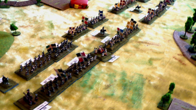 I had Stephen B, Stephen P, Darrren (The Duc), Richard M and John B in attendance so used a fairly large set of forces for a fictional battle set in 1704AD.