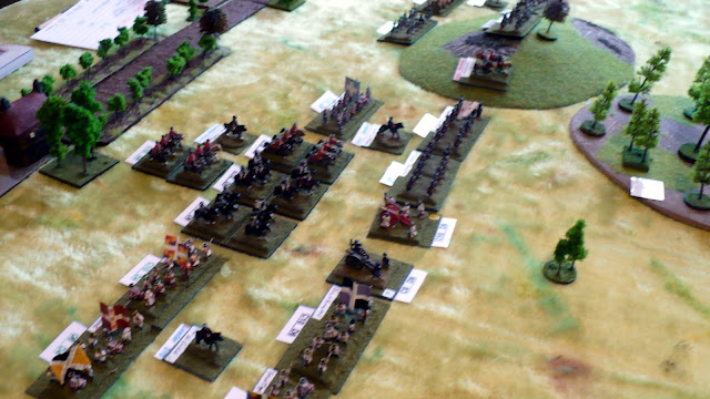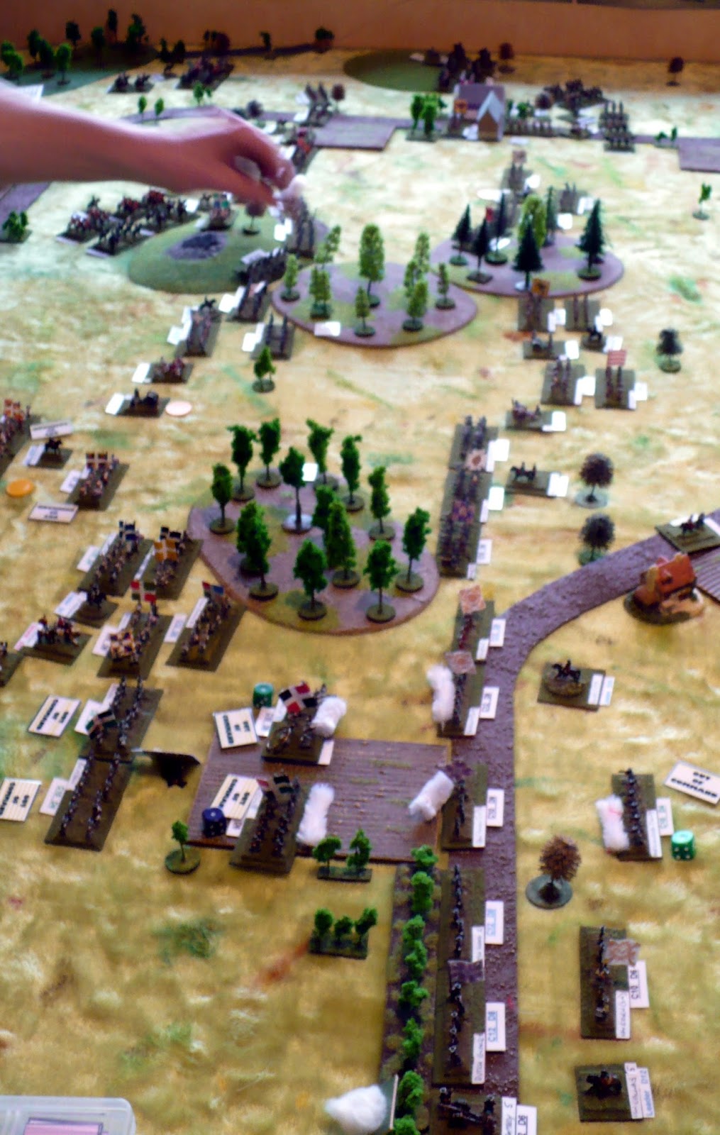 Pre-battle rolls saw one French Foot Brigade delayed (4 Move cards) arriving to battlefield.