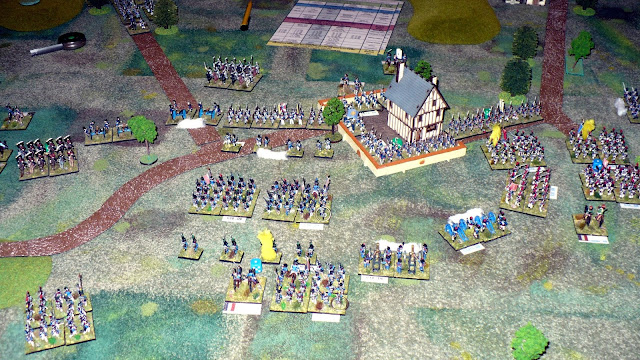 In the village his Dutch Guards weathered the ineffectual fire of Jacobites or Rallied off damage (one unit managed to remove 2 hits in one roll !!) and contested occupancy as North Irish arrive to the rear.